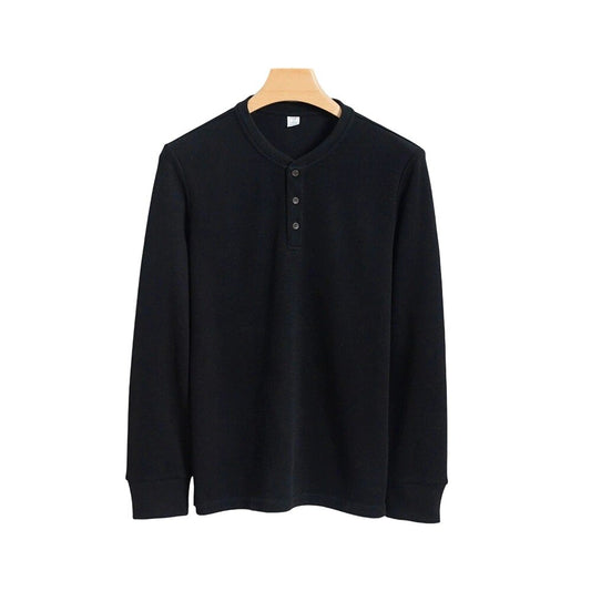 Cotton Waffle Long Sleeve Henley T-Shirt